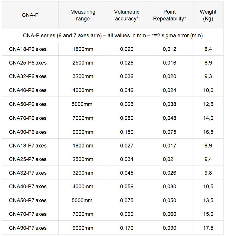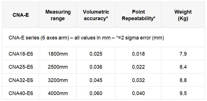 The new CNA-E and the CNA-P arms are lighter and this make easier to handle the arm during measuring.